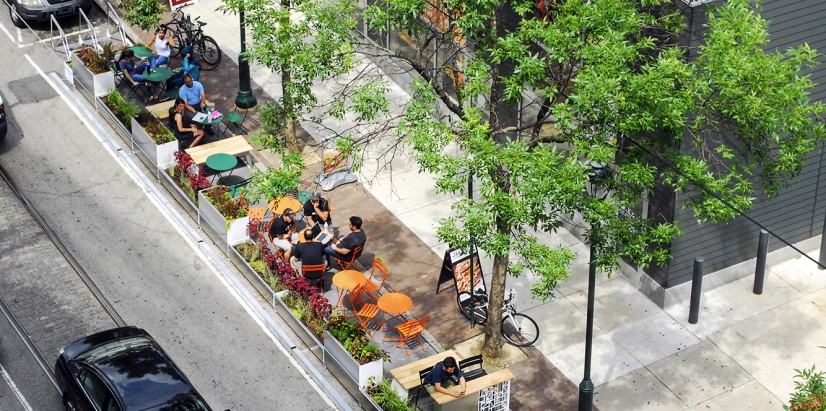 *Seasonal “parklets” are used in northern cities to take advantage of outdoor space like Philadelphia (shown above)